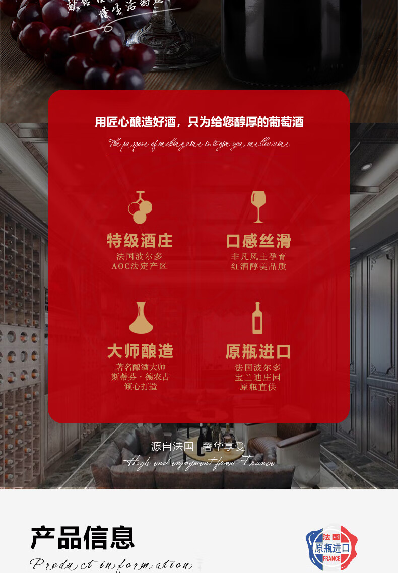 • CHATEAU LOUIS【宝兰迪庄园】2022年份珍藏干红葡萄酒 法国波尔多原瓶原装进口 750ml单支装红酒